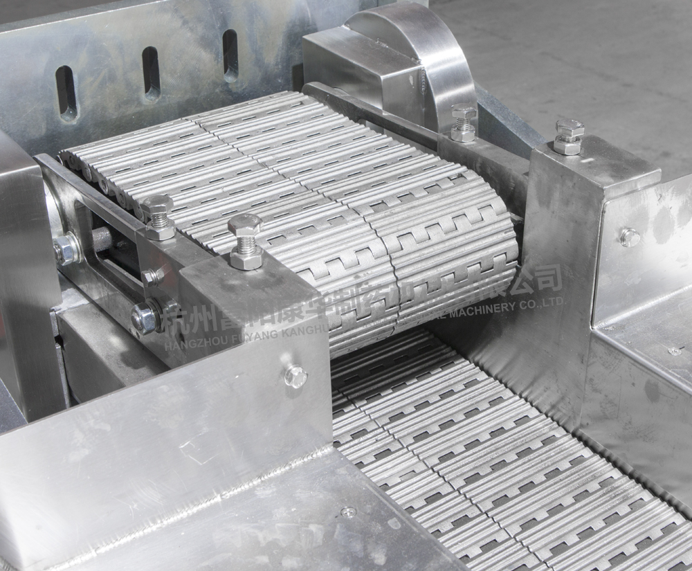 采用不銹鋼鏈條連續(xù)輸送物料,操作簡單,生產效率高;該機具有運轉平穩(wěn)、噪音低、維修方便等特點,符合GMP要求。